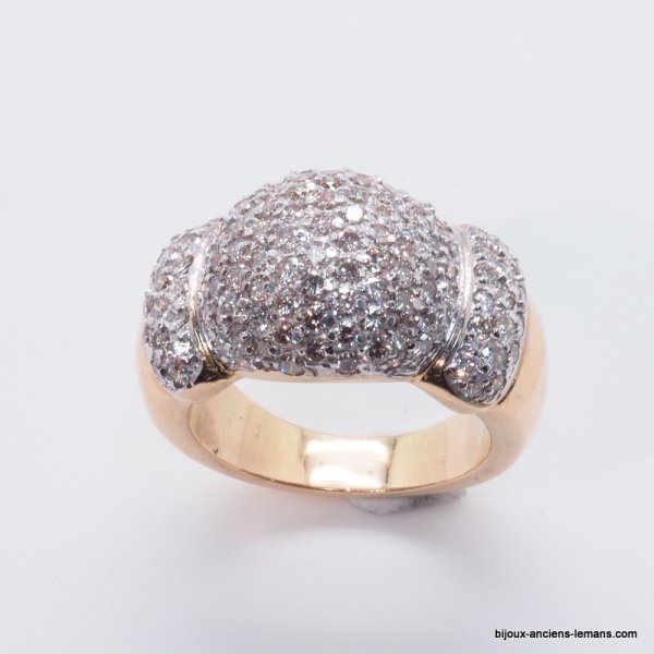 Importante bague boule or jaune et or gris 18 carats sertie de diamants taillés en brillant