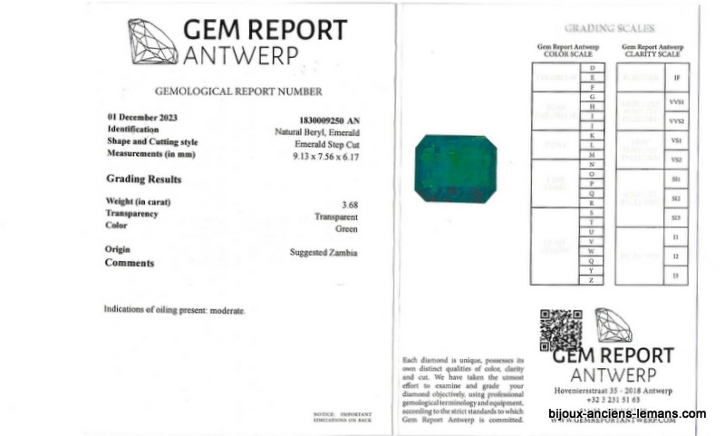 dimension de l'emeraude : 9.13 x 7.56 x 6.17 mn